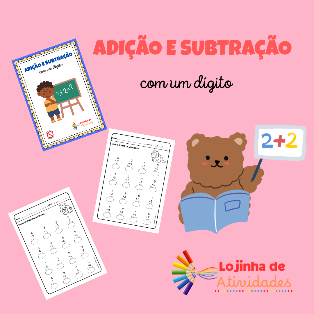 Kit com 6 páginas de operações de adição e subtração com um dígito.