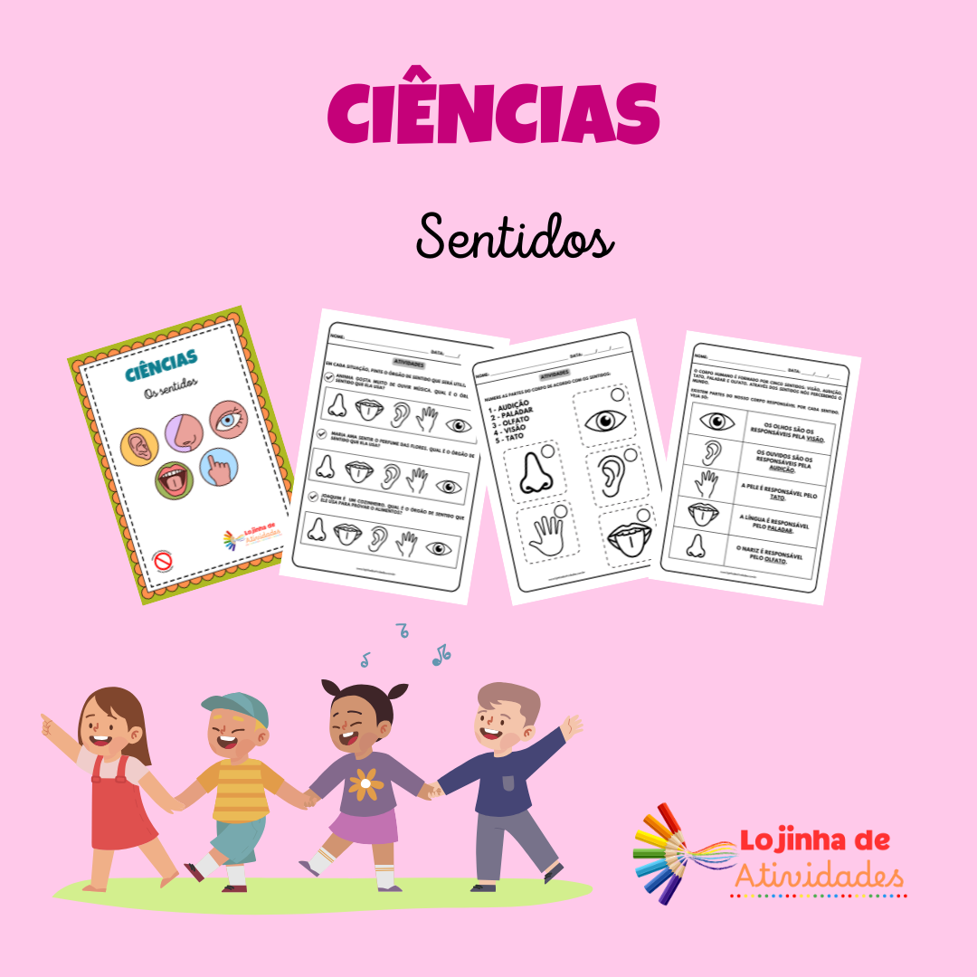 Kit com 10 páginas de atividades para explorar os cinco sentidos.
